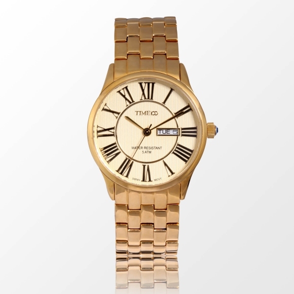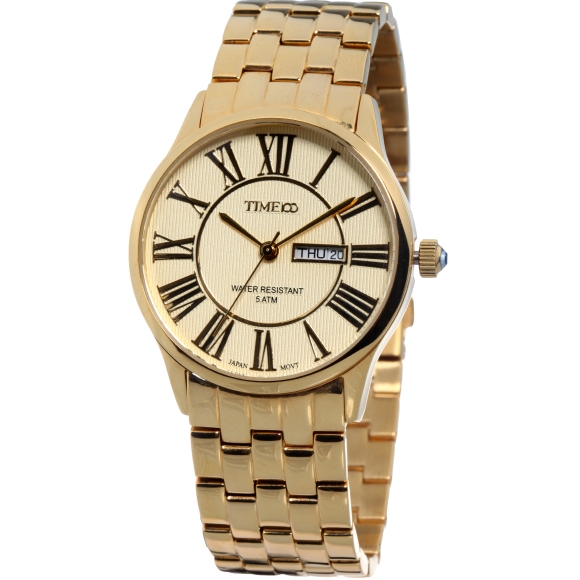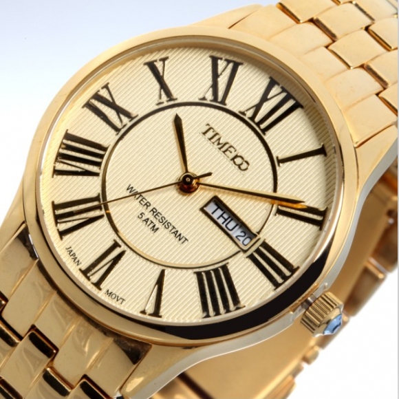 TIME100时光一百 简约复古立体水波纹日历钢带情侣男表W80070G