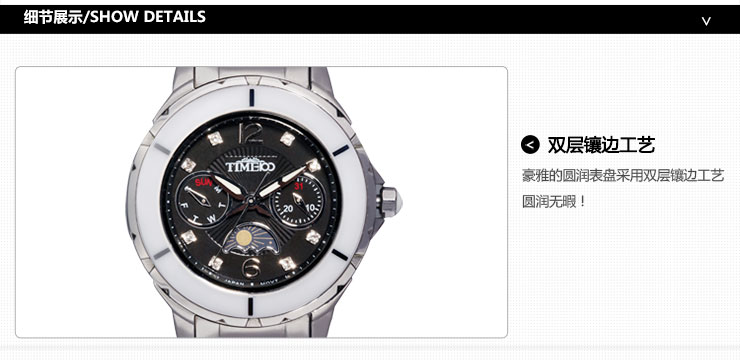 陶瓷圈日月相多功能女士手表 全国包邮(只包圆通和申通快递),钢带表免费赠送拆带器。