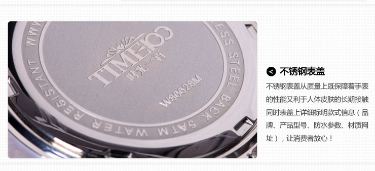 TIME100时光一百 简约复古罗马刻度日历钢带情侣男表W80069G