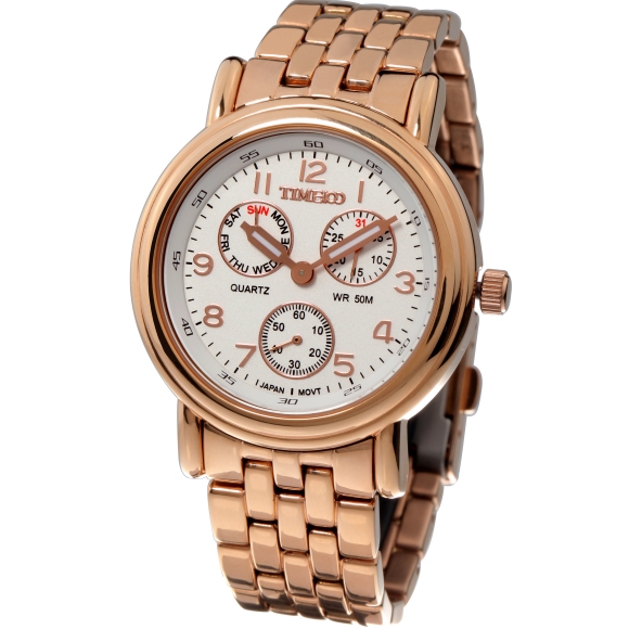 TIME100时光一百 简约复古罗马刻度日历钢带情侣男表W80069G