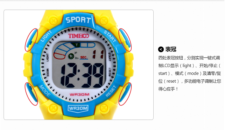 炫彩LCD显屏多功能防水电子表 (全国包邮)