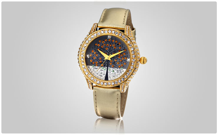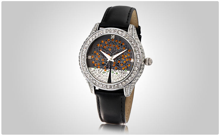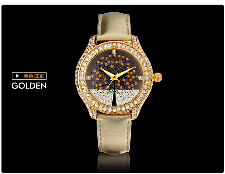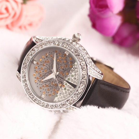 浪漫许愿树镶钻真皮女表 (全国包邮)