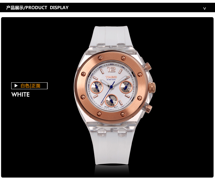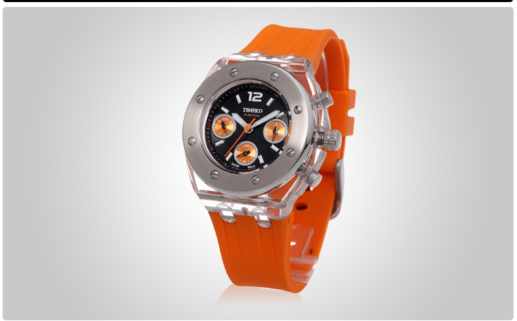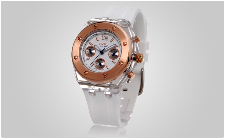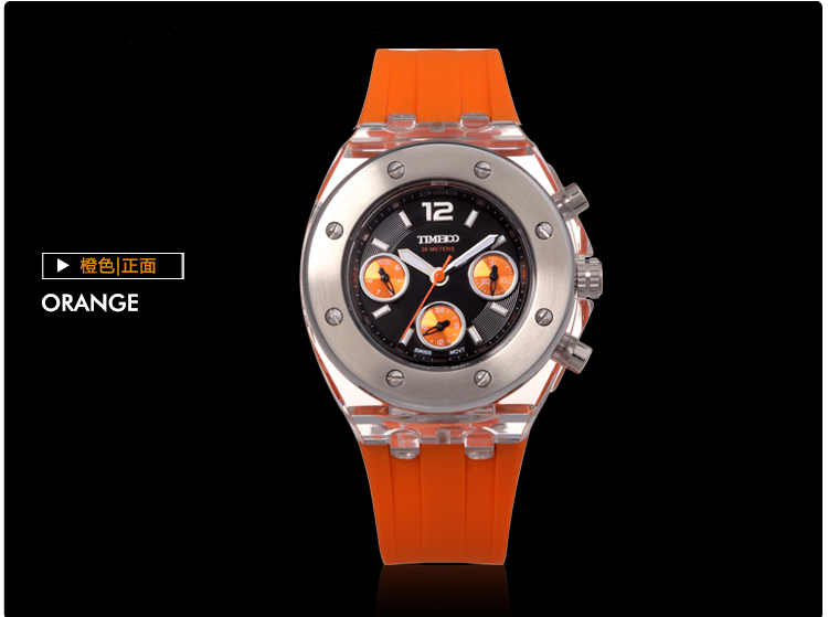 运动时尚三眼多功能硅胶带情侣腕表女款