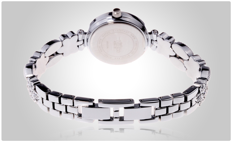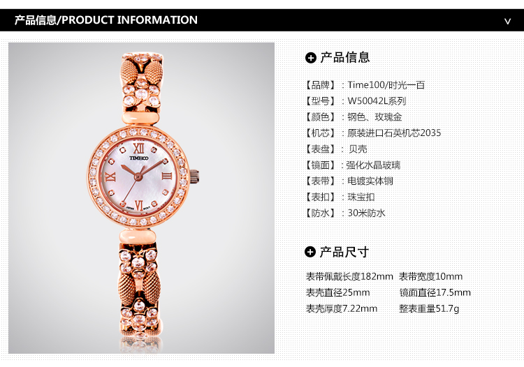 时光一百(TIME100)女表小表盘简约防水女士腕表套装女手链手表七夕礼物送女友W50888L钢色