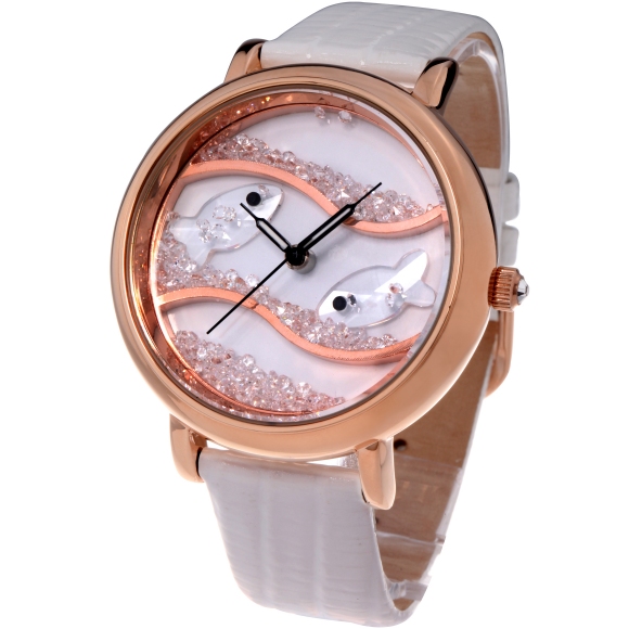 闪钻海洋水晶鱼真皮防水表 (全国包邮)