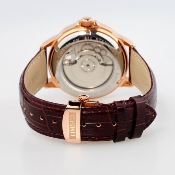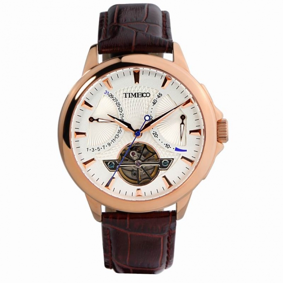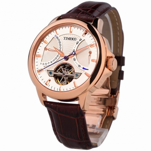 SURVAN 先机世界时男士全自动机械表皮带男表SVA0003玫瑰金