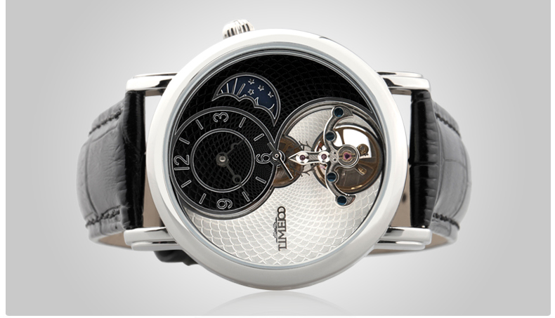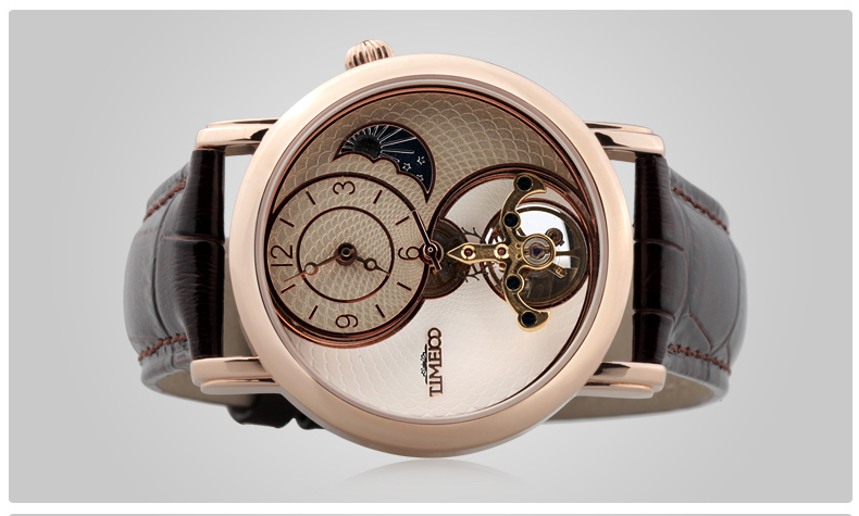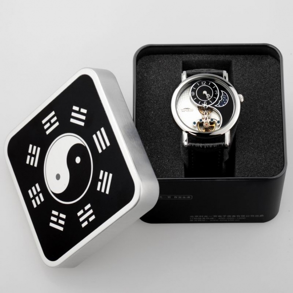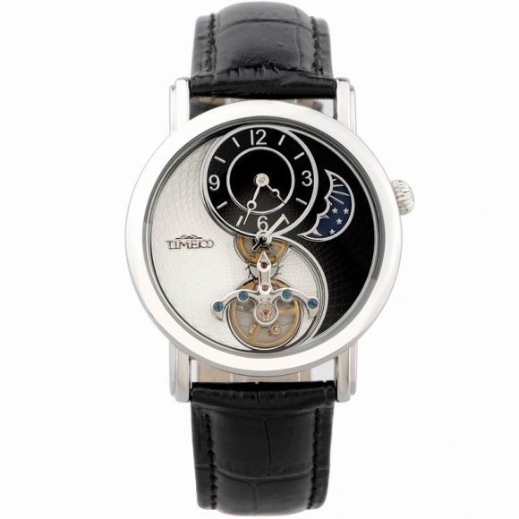 时光一百 太极飞轮月相镂空皮带机械表