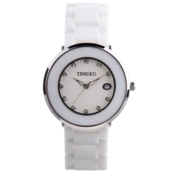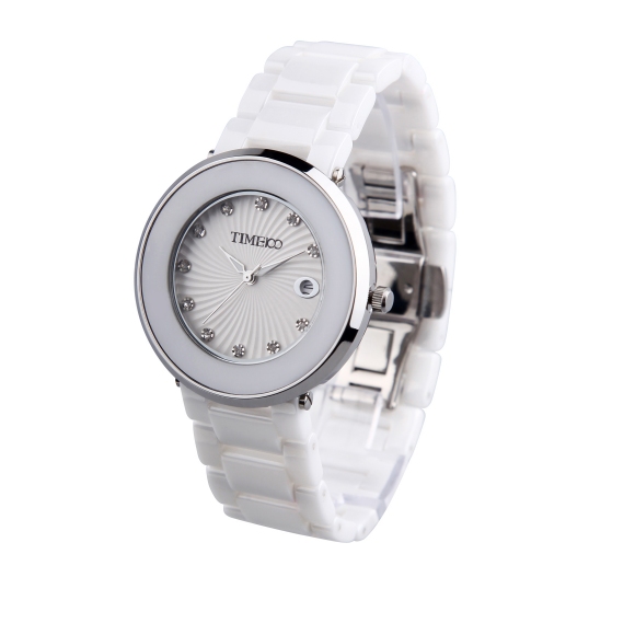 时尚圆形闪钻日历陶瓷女表 (全国包邮)