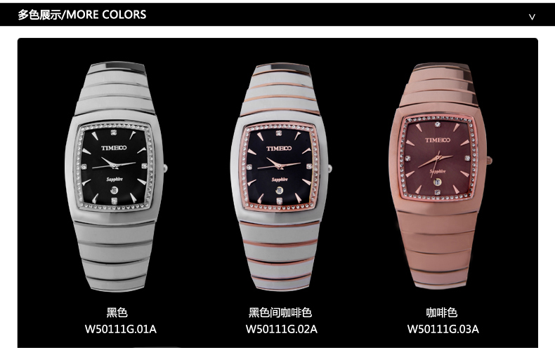 TIME100时光一百 时尚闪钻仿陶瓷石英女表 W50297L