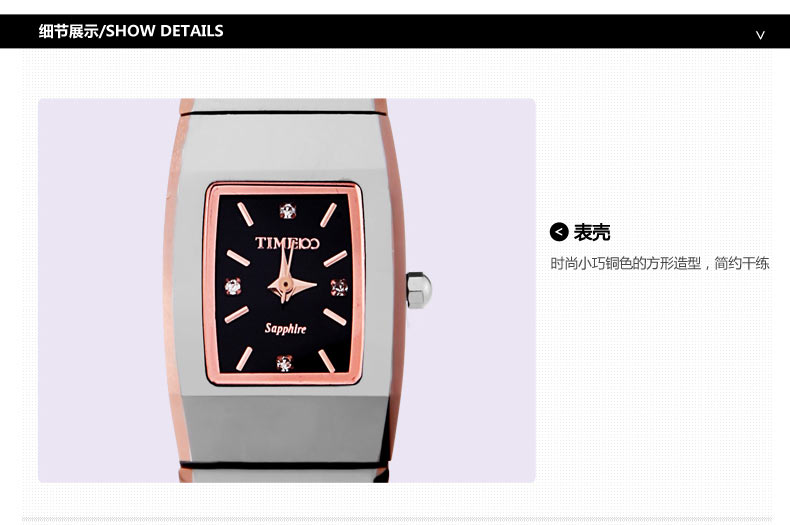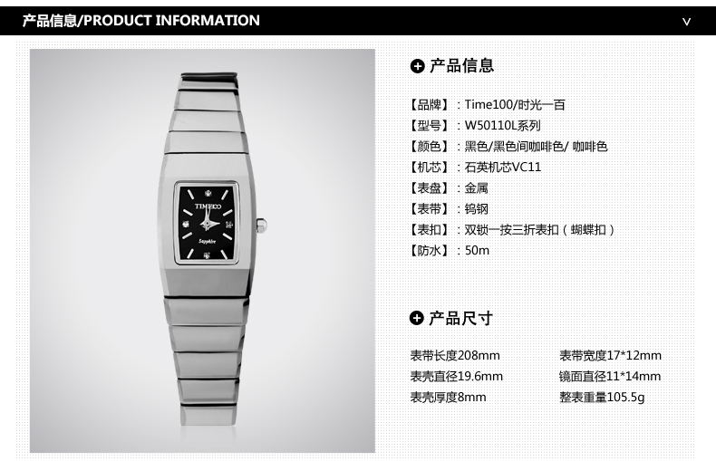 当前位置:首页 > 时尚方形正品钨钢女士手表防水石英表W50110L
