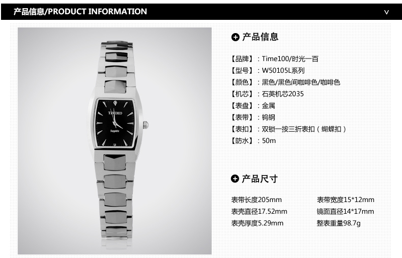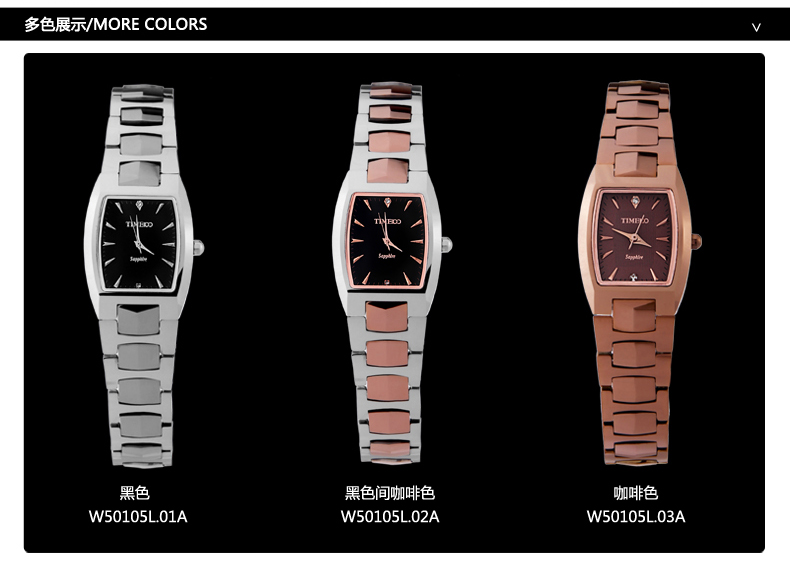 当前位置:首页 > 时尚方形正品钨钢女士手表防水石英表W50105L