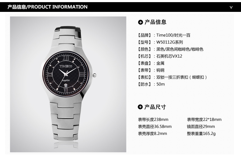 当前位置:首页 > 时尚圆形正品钨钢男士手表防水石英表W50112G