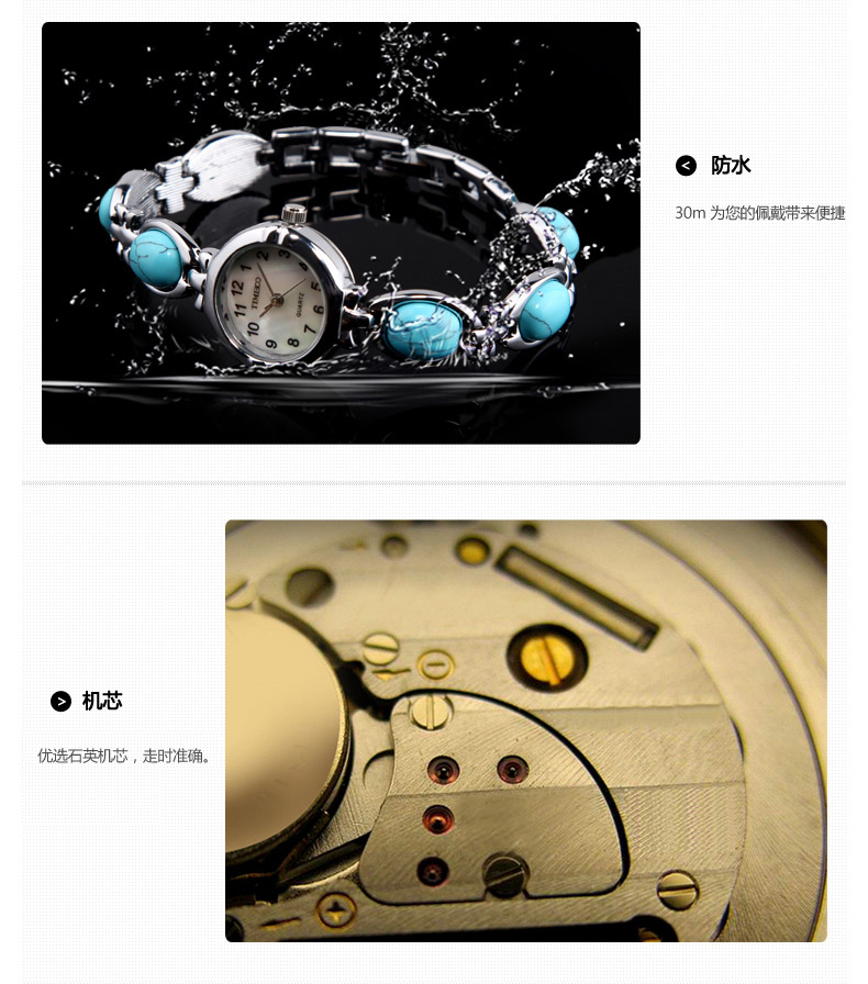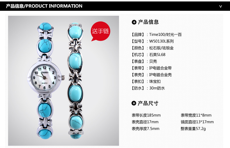 蓝松石/鲍鱼贝手链女士手表(送手链) 全国包邮