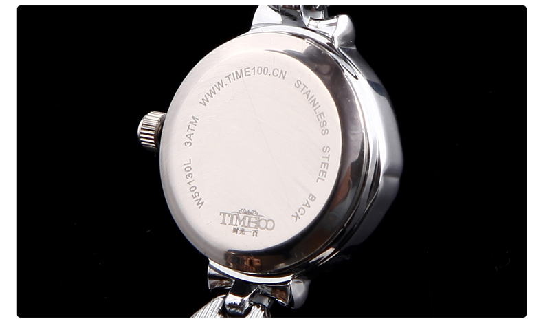 时光一百(TIME100)女表小表盘简约防水女士腕表套装女手链手表七夕礼物送女友W50888L钢色