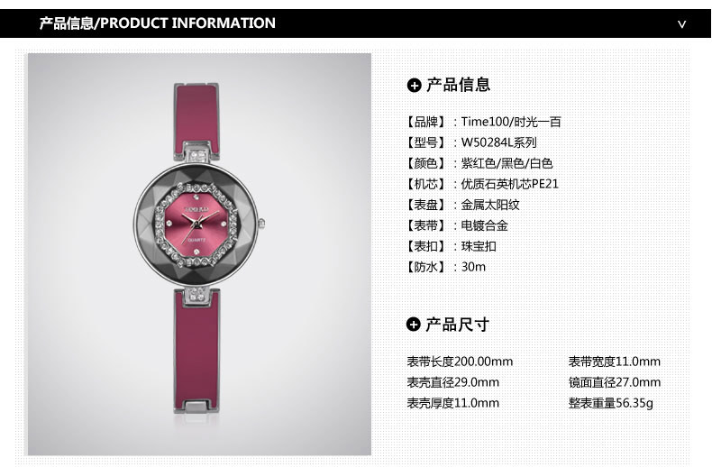 时尚多切面闪钻手链石英女表 W50284L (全国包邮)