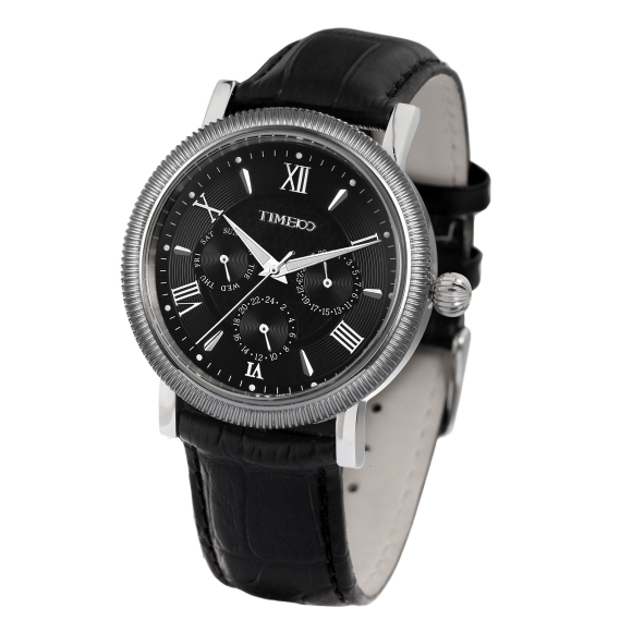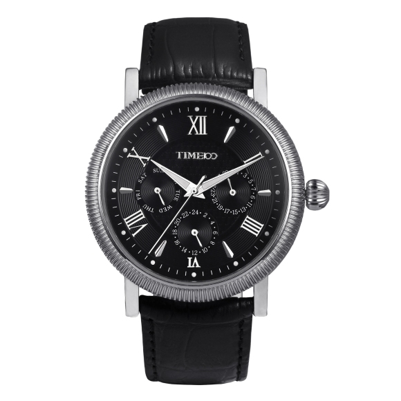 TIME100时光一百 古典罗马刻度多功能真皮石英男表 全国包邮