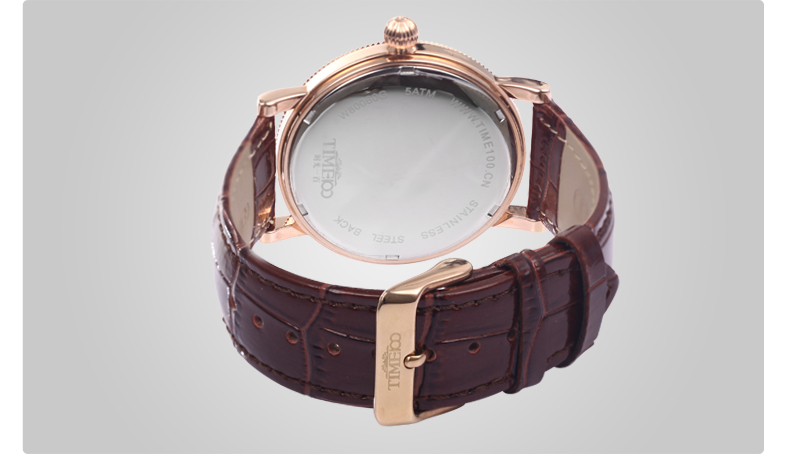 TIME100时光一百 古典罗马刻度多功能真皮石英男表 全国包邮