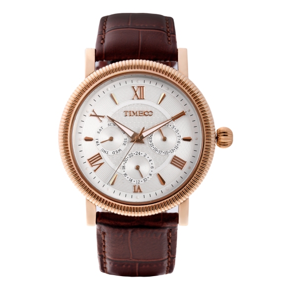 TIME100时光一百 古典罗马刻度多功能真皮石英男表 全国包邮