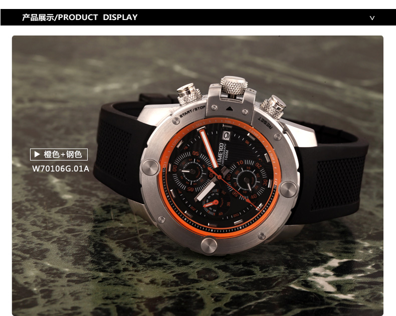 100米防水 时尚多功能精钢石英男表W70105G
