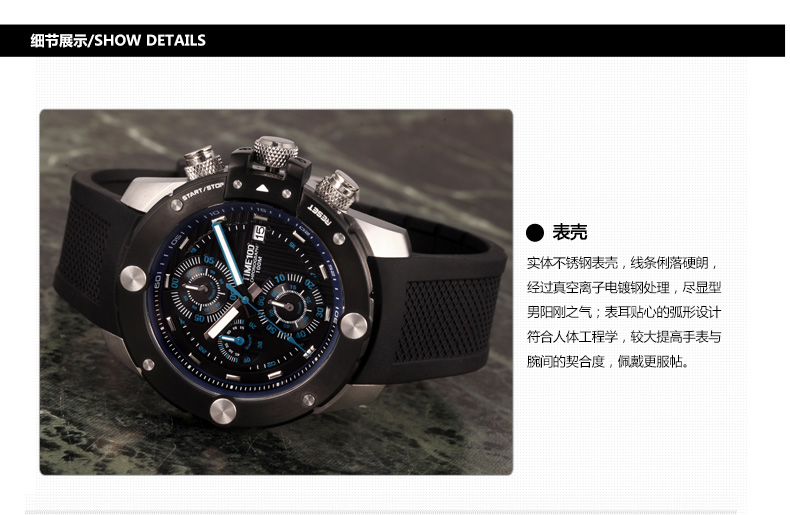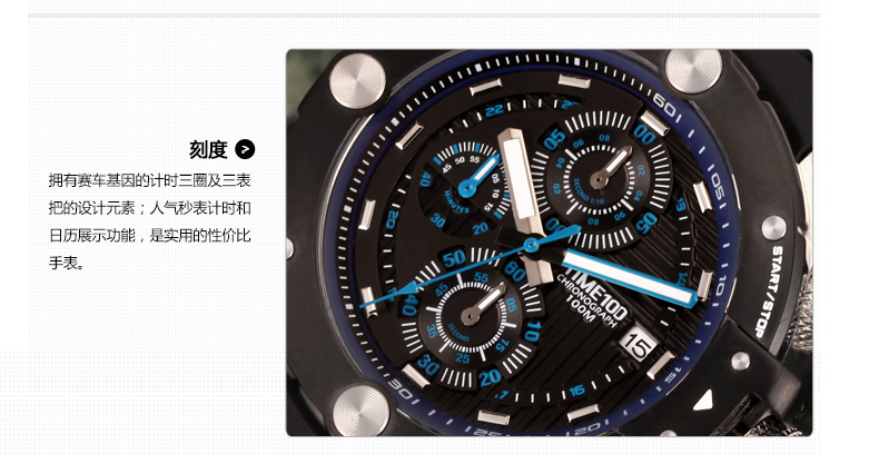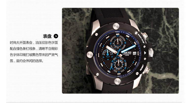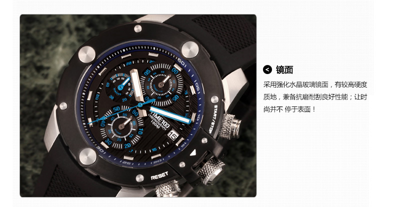 100米防水 时尚多功能硅胶石英男表 (全国包邮)