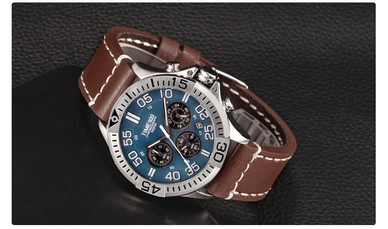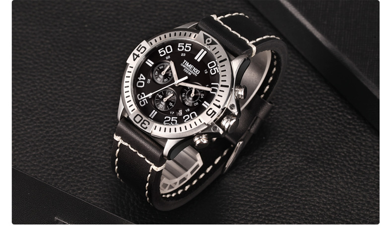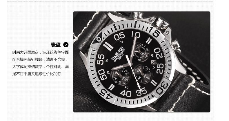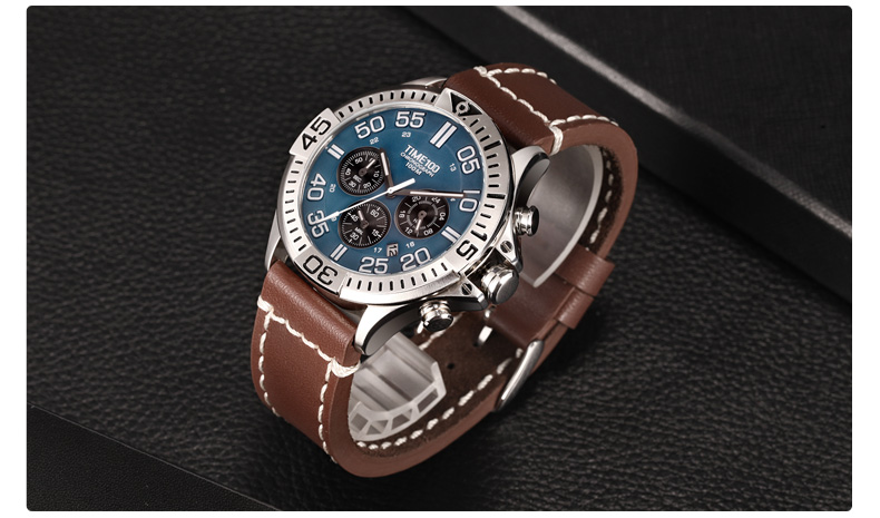 100米防水 时尚多功能真皮石英男表 (全国包邮)