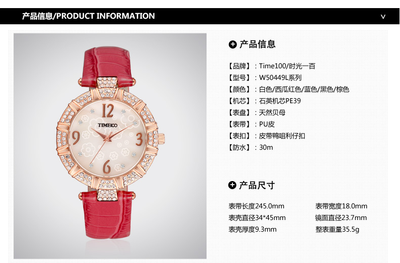 时光一百(TIME100)女表小表盘简约防水女士腕表套装女手链手表七夕礼物送女友W50888L