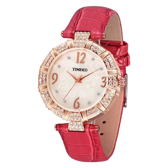 时光一百 简约复古灵动闪钻真皮女表W50277L
