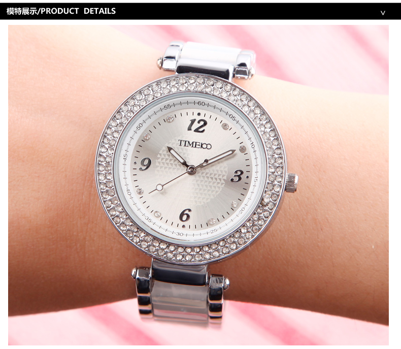 时尚圆形闪钻陶瓷女表 (全国包邮)