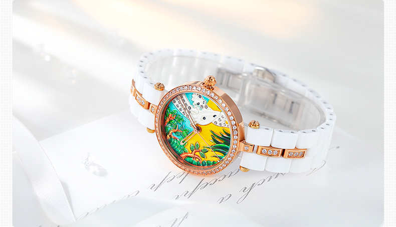时尚灵动立体雕花珐琅陶瓷女士腕表 (全国包邮)