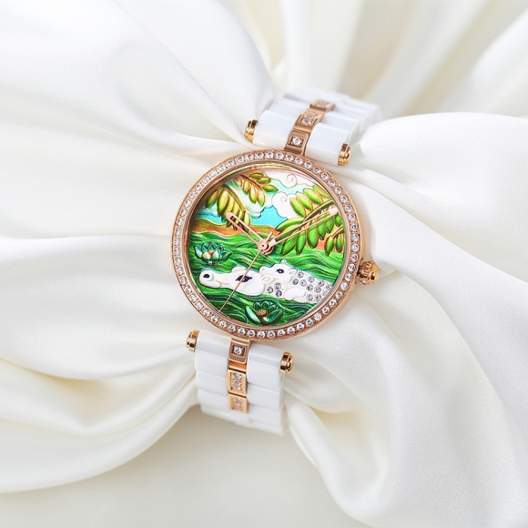 时尚灵动立体雕花珐琅陶瓷女士腕表 (全国包邮)