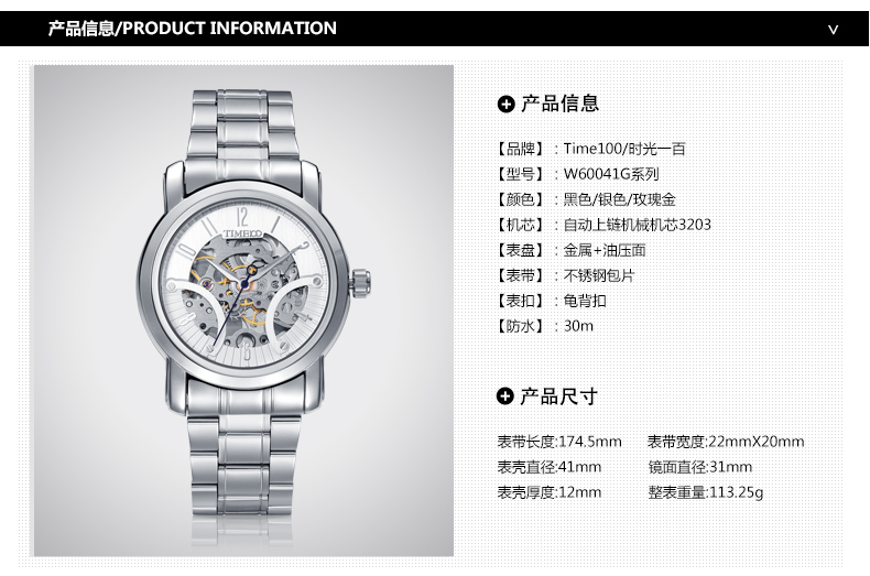 当前位置:首页 > 经典简约镂空自动上链机械表男表W60041G