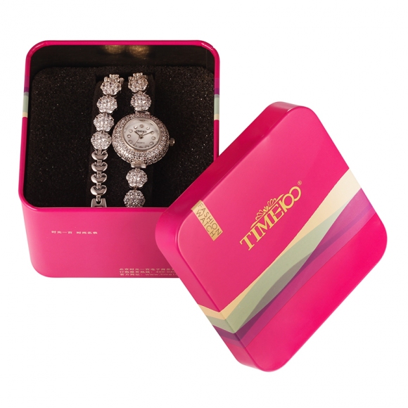 时光一百(TIME100)女表小表盘简约防水女士腕表套装女手链手表七夕礼物送女友W50888L钢色