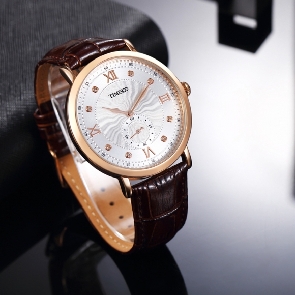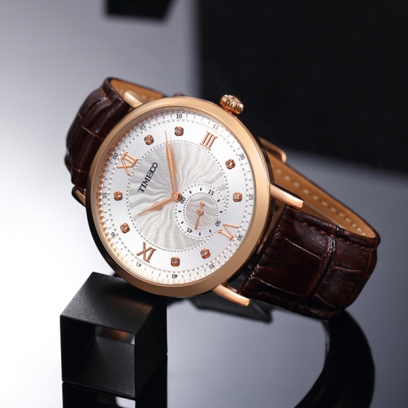 时光一百 简约复古灵动闪钻真皮女表W50277L
