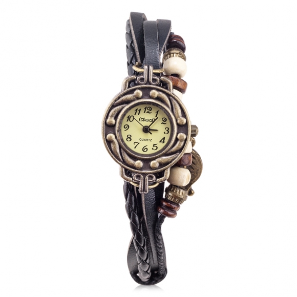 时光一百Smileyes系列 复古编织皮手链石英女表