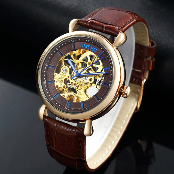 时光一百 双面镂空皮带自动机械男表