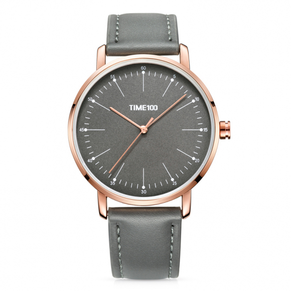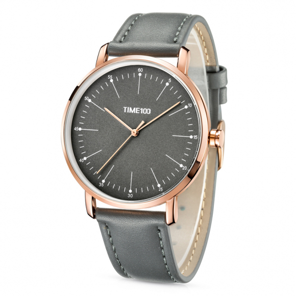 时光一百 简约刻度薄款皮带石英男表