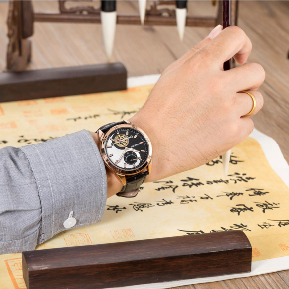 时光一百 太极飞轮能量显示皮带机械男表