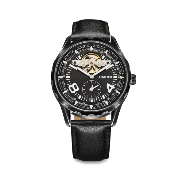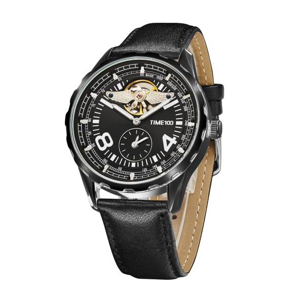 时光一百(TIME100)飞行师系列机械表天使翼商务飞轮手表多功能自动机械机芯防水男士手表