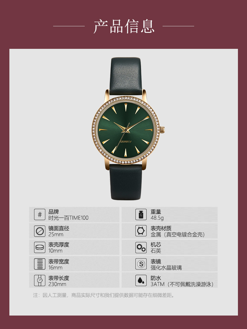 时光一百(TIME100)女表小表盘简约防水女士腕表套装女手链手表七夕礼物送女友W50888L钢色