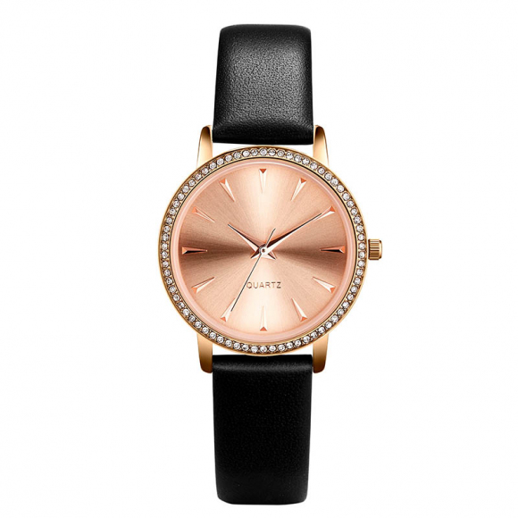时光一百 简约复古灵动闪钻真皮女表W50277L