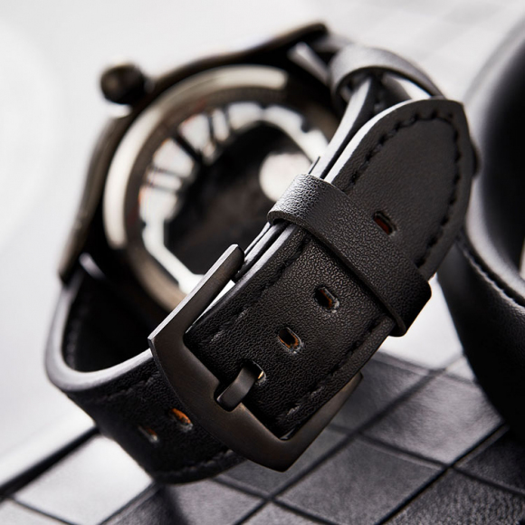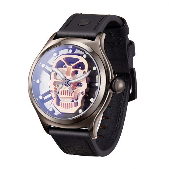 时光一百(TIME100)手表男时尚个性骷髅鬼脸弯刀镂空蓝色镀膜玻璃镜面男士手表车缝线牛皮圆盘防水男表