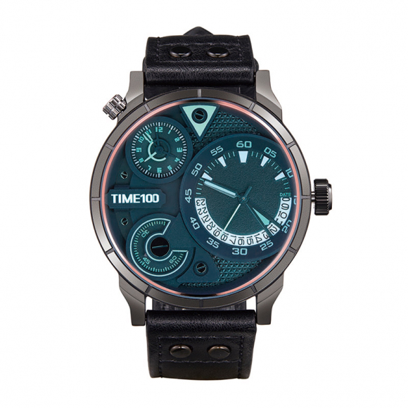 时光一百(TIME100)男表个性炫彩三芯搭配石英男士手表 新款爆款
