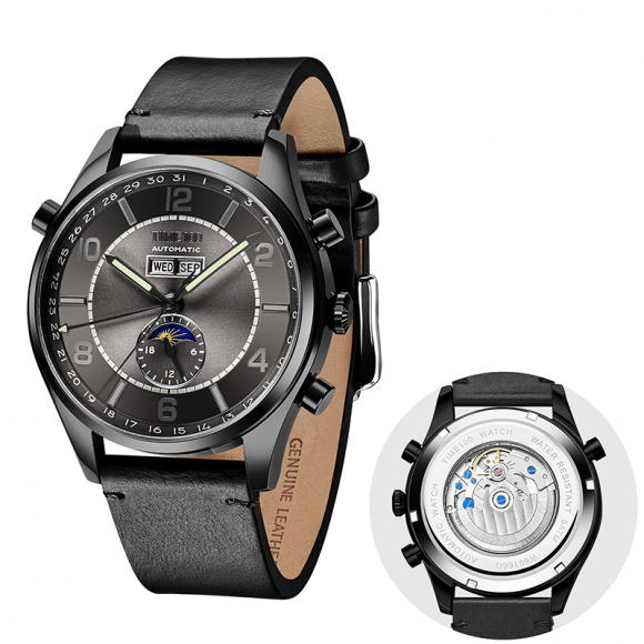 《领航》系列复古商务休闲日月星辰星期日历多功能男士机械手表