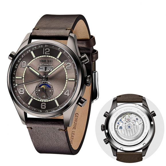 《领航》系列复古商务休闲日月星辰星期日历多功能男士机械手表