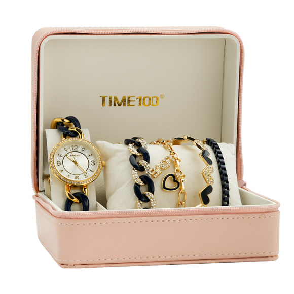 时光一百(TIME100)女表小表盘简约防水女士腕表套装女手链手表七夕礼物送女友W50888L钢色